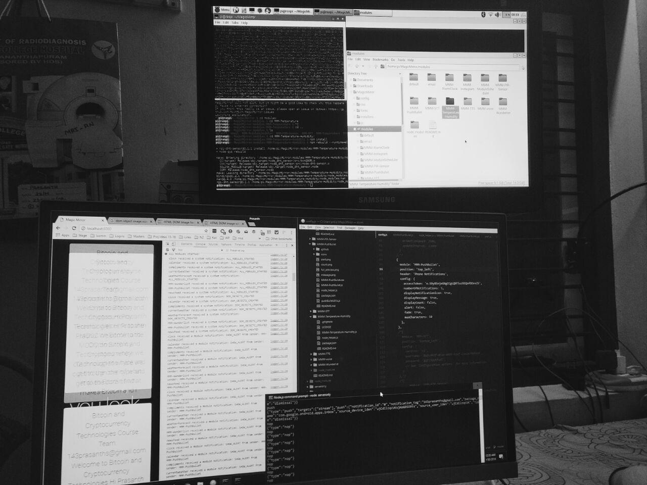 Another requirement I had was to mirror the phone notifications. I was already using a third-party application - PushBullet, to mirror the notifications to my browser. So it was only a matter of writing a module that gets notifications from PushBullets API and showcases in the mirror.