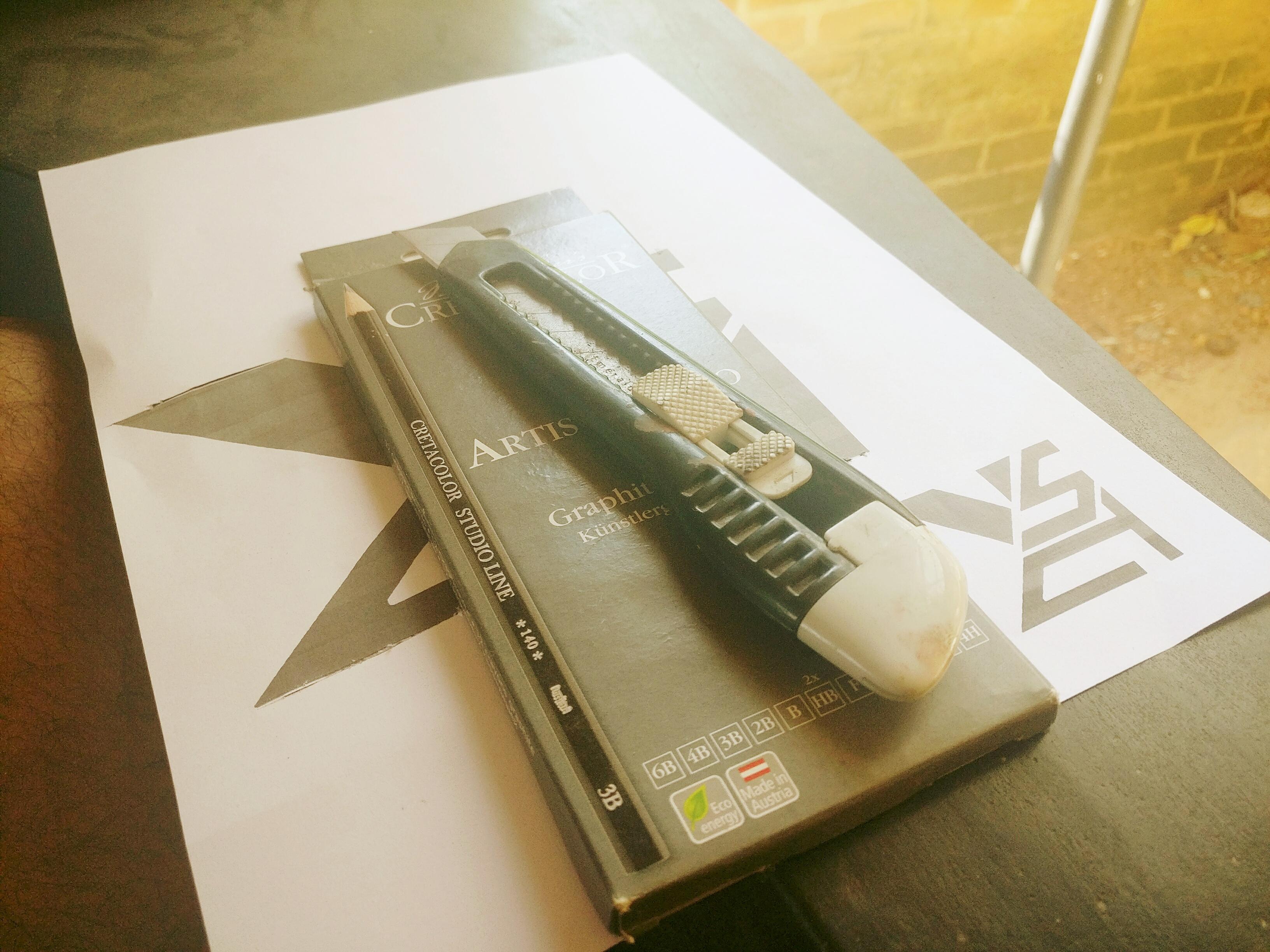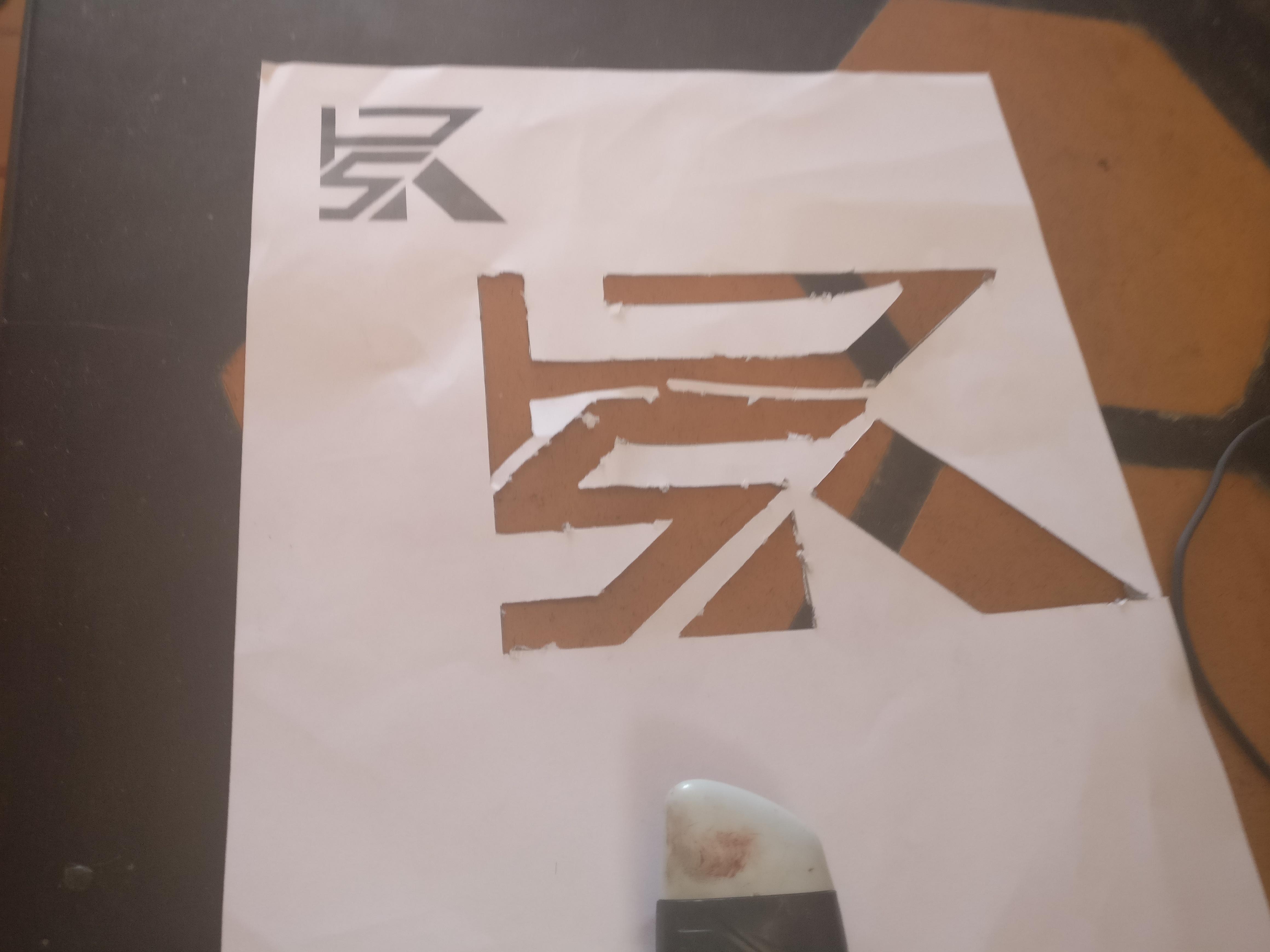 Printed the logo on an A4 sheet and cut out a stencil using a paper blade.
