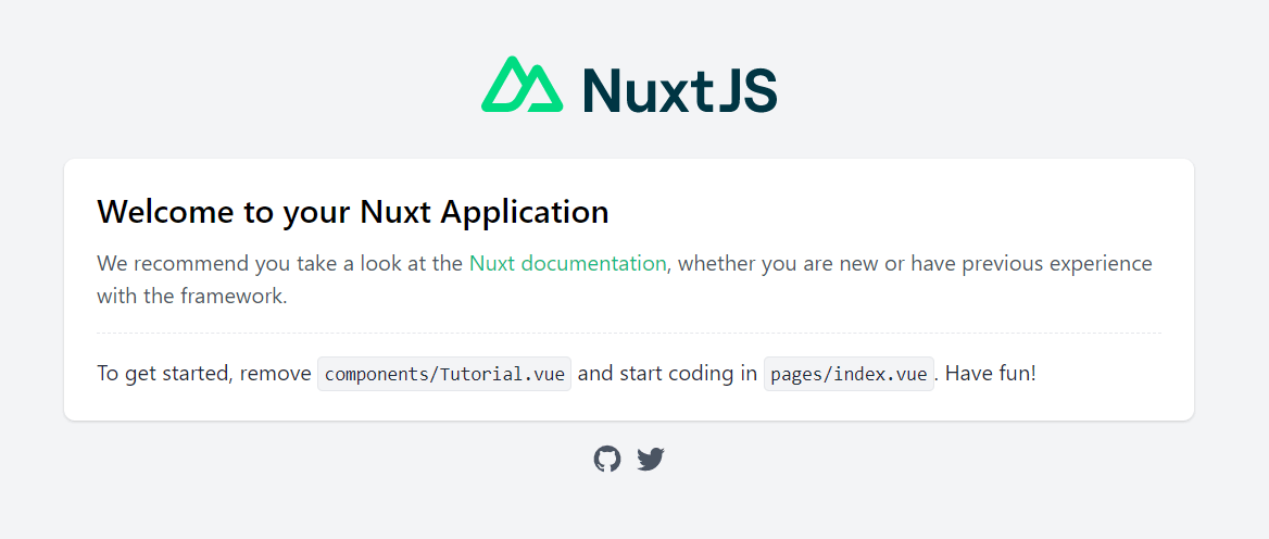 When it’s done, you can cd into the project. Open it with your favorite editor (I use VS Code) and run yarn dev (or npm run dev). Open your browser and head to localhost:3000 to get greeted by the Nuxt welcome screen: